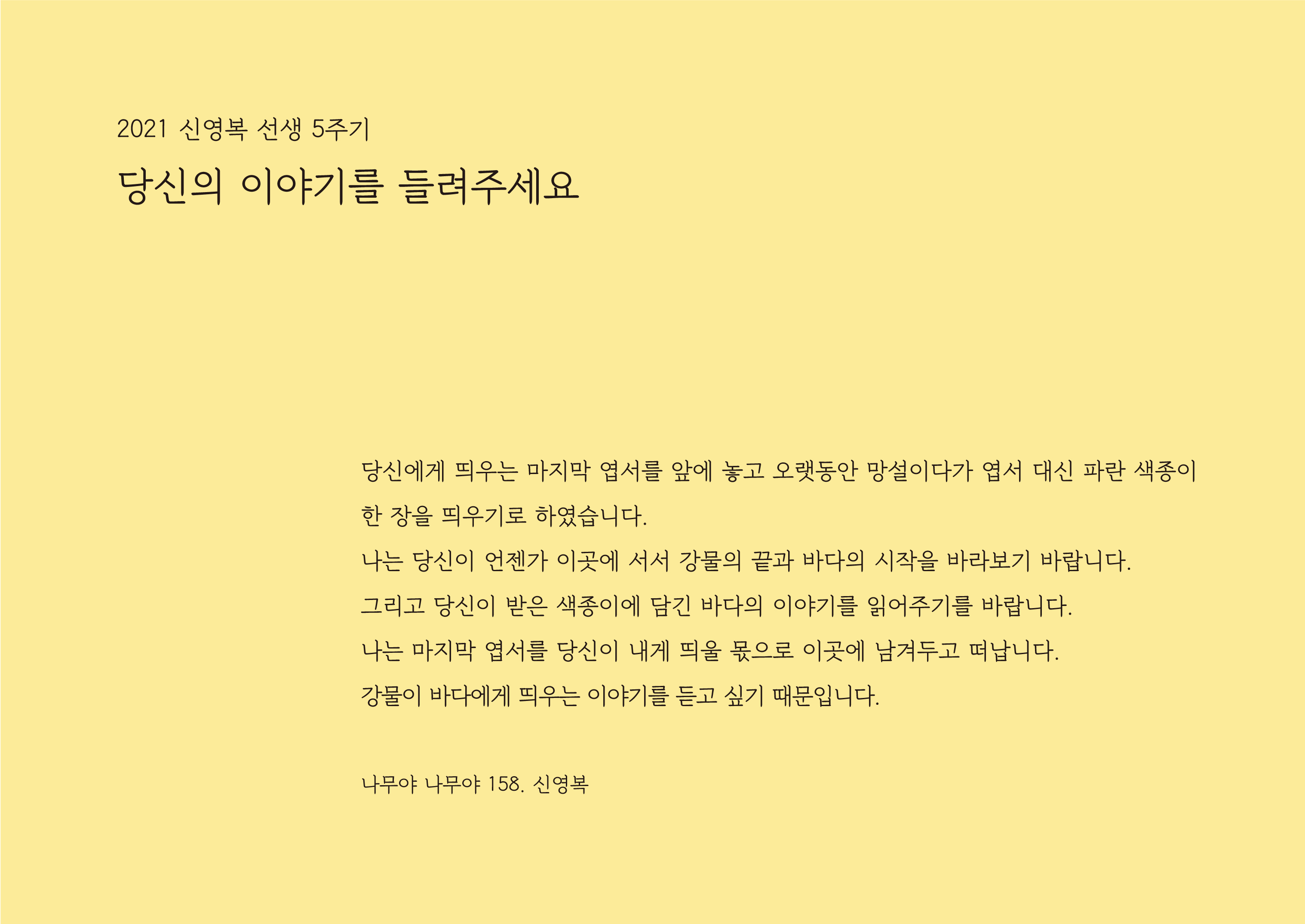 글보기제목프린터 출력용_ 엽서 견본1_pdf파일 다운받기2020-12-30 19:26작성자더불어숲첨부파일신영복선생 5주기 엽서1.pdf (232.5KB)신영복선생 5주기 엽서1_2.jpg (308.4KB) 태그 목록 이전컴퓨터 입력용_엽서견본1_hwp파일 다운받기더불어숲2020-12-30다음[총회] 2020 정기총회 자료더불어숲2020-09-17 Powered by MangBoard | 망보드 스토어