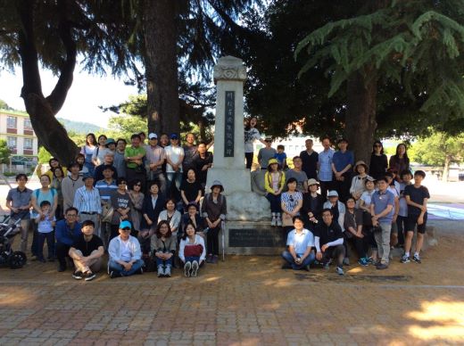 16:30 밀양초등학교 방문 - 선생님 글씨 비문 앞에서 단체사진 찍기