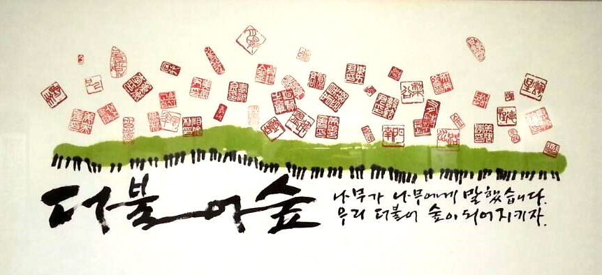 2017년 <더불어숲 書如會> 신입회원을 모집합니다. 더불어숲에서 붓글씨를 배우는 <서여회>는 <고 牛耳 신영복 선생님> 글씨를 임서하면서 서로 가르치고 배우는 곳입니다. 체계적이고 전문적인 서예를 배우고 싶은 분들에게는 부족한 공간이며, <고 牛耳 신영복 선생님> 글씨와 생각을 배우고자 한 공간에 모여서, 붓글씨를 통해 관계와 생각을 넓혀가는 사람들의 만남의 장소입니다. 모임 장소는 서울 남산 (중구 필동)에 있으며, 연습은 토요일 오후 (1-6시)이며, 개인 회비 (월 3만원)로 운영됩니다. 연습공간에서는 벼루, 먹, 화선지, 문진, 깔개 담요가 제공되므로, 개인은 붓 만 준비하면 됩니다. 매년 늦 가을에 작품 전시회를 갖게 되며, 겨울 방학을 끝내고, 2018년 초에 다시 모여 글씨를 씁니다. 가입을 신청하고자 하는 분은 아래 내용 참고 바랍니다. □ 신청방법 : 다음과 같은 자기소개를 더불어숲 서여회 (jangyj@ajou.ac.kr)로 보내주시면, 내부 의견 수렴을 거쳐 개인적으로 연락을 드리도록 하겠습니다. 1. 이름, 나이, 성별 2. 직업 3. 사는 곳 4. 가입 신청 동기 5. 가장 좋아하는 신영복 선생님의 붓글씨 6. 연락처 (핸드폰) □ 신청기간 : 2016 년 12월 8일 ~ 2017년 2월 15일 □ 신입 회원 첫 모임: 2017년 2월 18일 (토) - 더불어숲 서여회 - |