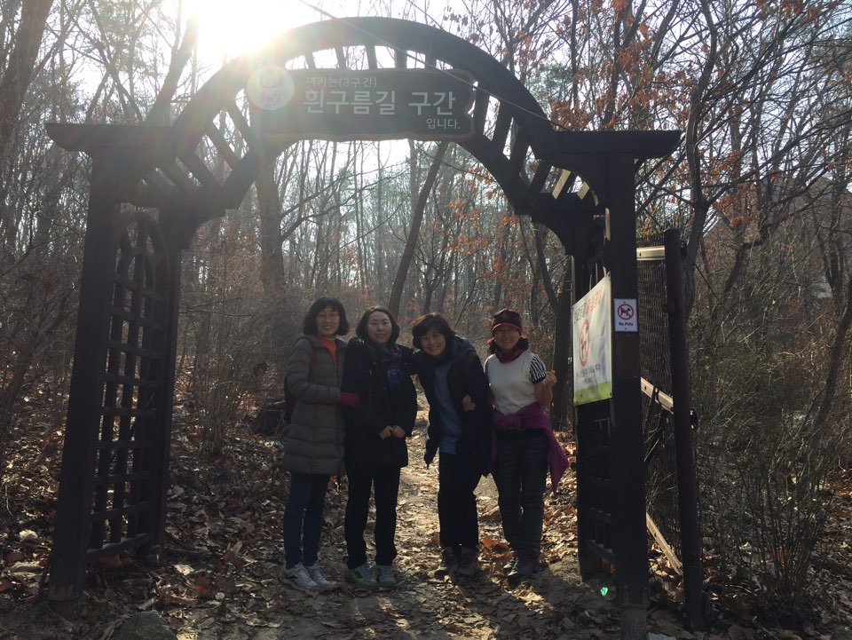 버스에서 내려 화계사까지 둘레길 산행중 선두 대여섯명과 나머지가 분리되어