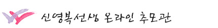 | | 신영복 선생님 5주기 온라인 추모관 안내 신영복 선생님을 기억하는 곳입니다 생각나실 때 들리셔서 당신의 이야기를 들려주세요.엽서를 다운받지 않으시고 직접 추모의 글을 올리시거나사진을 올리셔도 됩니다.날짜 제한 없이 늘 열어 놓겠습니다.+ 더불어숲2021-01-12104 |